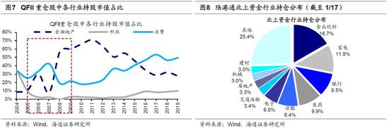 外资持股看重业绩。对外资的传统认知是普遍偏好消费股,我们本次路演沟通进一步印证外资进入A股消费白马并不是唯一的选择,他们对科技、制造业龙头也很感兴趣。外资投资我国股市主要是两个渠道,一是QFII /RQFII 制度,二是沪深股通。首先分析时间更久的QFII 2004年以来持仓情况,QFII在05-09年、12年以后分别加大了对金融和消费配置,背后是这两段时间金融、消费基本面业绩向好,详见《外资对风格影响多大?-20190729》。分析陆港通北上资金持股特征,截至1/17,北上资金持仓前五大行业是典型的消费、金融行业:食品饮料市值占比16.7%、家电11.5%、医药9.9%、银行9.5%、非银8.4%,但紧随其后的包括电子6.0%、交运3.4%、房地产3.3%、机械3.0%。外资持股并非简单的看行业,最重要的还是业绩,科技和制造业龙头公司业绩持续向好也会吸引外资流入,科技龙头如广联达,截至1/16外资持股占总市值比重达14.2%(19Q3 ROE-TTM9.7%)、汇川技术11.6%(16.1%)、大族激光10.8%(7.8%),制造业龙头如海螺水泥10.8%(28.3%)、东方雨虹10.0%(23.6%)、三一重工7.5%(28.1%)。动态视角看外资持股与业绩相关性也很强,统计2019年至今陆港通北上资金每月流入前五大行业,发现11月以来科技板块持续进入外资重仓买入行列:11月电子位居北上资金买入额第一,12月传媒位居北上资金买入额第五、1月初至今(1/17)计算机位居北上资金买入额第三,这背后的逻辑是科技股业绩向好。我们发现电子扣非归母净利润累计同比从18Q4低点-28.5%升至19Q2的-6.1%、19Q3的10.7%,传媒从18Q4低点-233.7%升至19Q2的-16.5%、19Q3的-2.7%,计算机从18Q4低点-75.9%升至19Q2的-20.3%、19Q3的-11.8%,科技(TMT)从18Q4低点-233.7%升至19Q2的-16.5%、19Q3的-2.7%,三季度科技行业业绩开始出现好转迹象。
