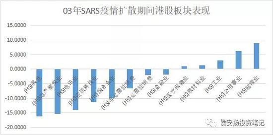 在港股市场里,疫情扩散期间(03年年初到4月底前),地产建筑业是杀跌主力。而表现很好的,行业明显跟当时疫情关系不大的,像能源业,公用事业,工业,股价是非常坚挺的。