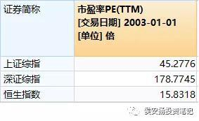 我看了当年3个指数的市值,差别特别惊人。比较能解释得了的,就是当时的估值。当时A股无论是上证、还是深证,都是非常非常贵的,市盈率分别是45倍和179倍。但是,当时的恒生指数,只有16倍。
