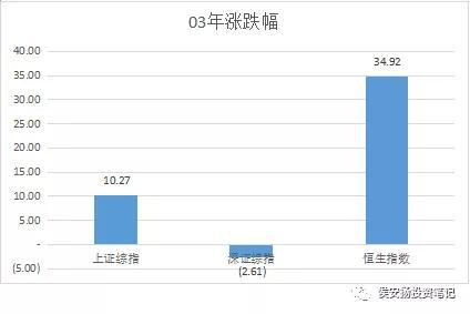 全年下来,2003年的上证指数、深证指数、恒生指数表现,其实跟这件事情的关系不大。
