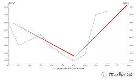 蓝色柱子就是香港楼市03年的情况,是个历史底部。但是要交代一个背景:香港楼市在03年前,已经是一个几年的熊市了,从最高点跌了一半都不止。