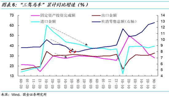从“非典”对“三驾马车”的影响来看,影响主要体现在进口和消费上,而出口和投资增速均未出现明显下降。“非典”疫情发生期间,“社会消费零售总额、进口金额、固定资产投资”增速出现了不同程度的下行,其中“社零、进口”增速负面影响相对较大。“非典”疫情结束之后,“社会消费零售总额”增速率先出现反弹。
