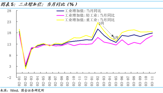“非典”疫情对“重工业”的冲击大于对“轻工业”的冲击。从原因来看,重工业的回落是导致工业生产大幅回落的主要原因,重工业、轻工业增加值回落幅度分别为8.1、3.4个百分点。疫情步入尾声以后,工业增加值从底部反弹回升。