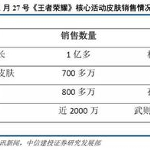 由此我们得到1月16号到1月27号春节皮肤活动新增流水为52.22亿元左右,而28号到31号仍有4天活动。考虑到销量递减,我们认为以上皮肤在后4天的销量为前10天的20%左右,即10.44亿。另外本次春节活动最后一个史诗级皮肤妲己时之彼端于29号上线定价为首周710点券,截止上线12小时销量已达到近200万,虽然有热情的桑巴在前考虑到英雄热度和高性价比,我们认为其销量应该能接近伽罗太华达到800万,即来带5.68亿的增量。