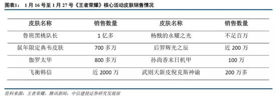 春节期间王者荣耀推出了众多活动,包括前期的年兽大作战(抽内测皮肤、永久皮肤礼包)、QQ过年王者(类似微信摇心愿,抽永久皮肤)、王者分享礼(送皮肤体验卡)等系列活动;以及分享送礼袋、新年限定黑桃队长皮肤、鼠年限定“山河志”系列皮肤售卖、狗年皮肤返场、新年习俗大挑战等等。其中大部分活动最终会落实到英雄及皮肤的消费上产生流水。为了对《王者荣耀》在春节期间及2020年1月的流水情况有较为精确的测算,我们拆分了9款重点活动皮肤与其他基础消费的情况。