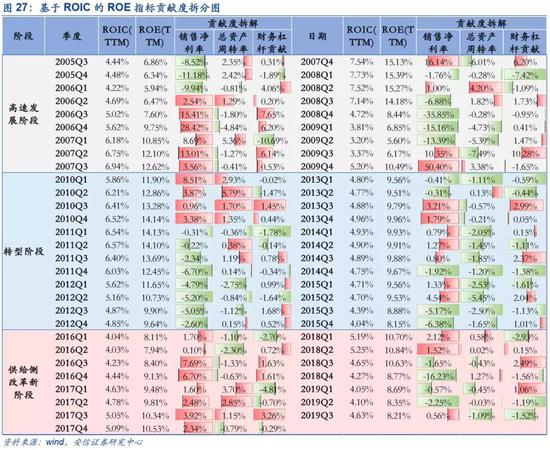 ■怎么看待当前A股出现ROIC和ROE的背离及未来的趋势?当前A股ROIC与ROE的背离主要是由于在高质量发展阶段债务周期压制下资产负债率的下行,这种背离某种程度上体现的是在实体经济在经历持续去杠杆之后告别了利用低成本资金放大杠杆获得高利润的商业模式。因此,去杠杆背景下ROIC回升具积极意义,是一个正面积极的信号。同时,未来随着企业去杠杆趋缓或者稳杠杆,那么在ROIC带动下ROE有质量可持续的企稳回升值得期待。