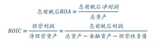 同时,有一个代表性的比较是ROA与ROIC,因为ROA(这里主要指税后息前ROA)与ROE的差异也是杠杆。但我们认为相比ROA,从财务理论上看,ROIC更加准确评估把握了经营性负债的作用与意义。