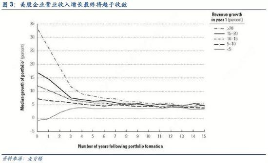 因此,ROIC将成为高质量发展阶段的估值锚,这点我们可以从美股的数据中得到一定支撑。引用麦肯锡的数据,我们发现无论前期营业收入增长多么高的公司,最终会随着时间趋于收敛,约在5%左右。因此,为前期的高增长支付高估值明显是不划算的。同时,我们发现ROIC在此过程中则趋于相对稳定,说明将ROIC作为高质量发展阶段的估值锚是合理的,为高ROIC付出高估值溢价也是相对稳妥的。
