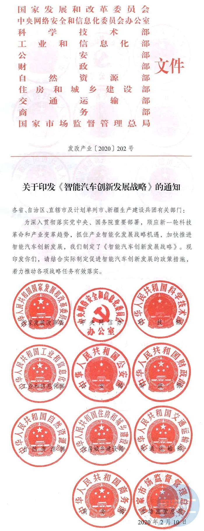 近日,国家发改委、工信部、公安部、交通部等11个国家部委联合盖章,出台了《智能汽车创新发展战略》,通知中提出,到2025年,中国标准智能汽车的技术创新、产业生态、基础设施、法规标准、产品监督和网络安全体系将基本形成。