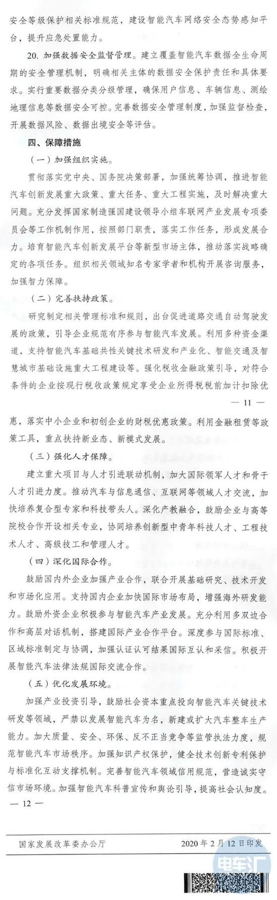 2月12日,发改委、工信部等11个国家部委联合下发了“关于印发《智能汽车创新发展战略》的通知”,通知中提到,到2025年,中国标准智能汽车的技术创新、产业生态、基础设施、法规标准、产品监督和网络安全体系将基本形成,能够实现有条件自动驾驶的智能汽车达到规模化生产,实现高度自动驾驶的智能汽车在特定环境下市场化应用。到2035年,中国标准智能汽车体系全面建成的目标。