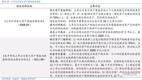 伴随定增规模化与创业板开启,重大资产重组市场关注度也逐渐升温。伴随定增数目与规模的扩张,涉及重大资产重组的大型定增也逐步获得发展,与之相关的法律法规也逐步完善。2008年4月,证监会颁布《上市公司重大资产重组管理办法》,该办法详细划定了重大资产重组的认定审核标准,并对实施重大资产重组的公司提出盈利补偿要求,以保证参与重大资产重组投资者的投资权益。2011年,证监会再次发布《关于修改上市公司重大资产重组与配套融资相关规定的决定》,详细界定了重大资产重组进行资产购买的规模下限,并允许募集相关配套资金,进一步鼓励上市公司通过重大资产重组进行优质资源整合。伴随相关政策落地,重大资产重组迎来发展,尤其自2009年创业板设立以来,云集科技成长类产业的创业板企业具有更加广泛的资产重组需求,2012-2013年间创业板上市公司共计实施了28项定增计划,融资目的全部集中于收购其他资产、资产置换重组和相关配套融资。