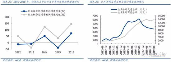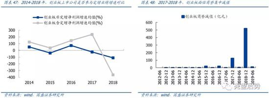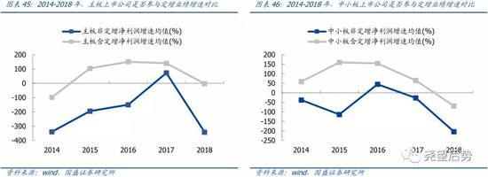 定增业绩贡献集体回落,创业板商誉风险集中释放。伴随定增政策收紧,各板块定增数目集体回落,实施定增的企业业绩增速也在2018年集体回落,而且此阶段各板块定增影响出现明显分化,其中主板、中小板和创业板的定增业绩贡献依次降低,实施定增的大盘蓝筹股体现出相对的稳定性,面临业绩集体回撤的大背景体现出一定的韧性,创业板则由于商誉减值集中爆发,业绩增速大幅回落,定增贡献转负。总体而言,此轮定增收紧对于实施定增的企业业绩影响十分显著,但也正由于此轮监管的收紧,此前商誉飙升导致的“虚假繁荣”风险得以释放,为此后资本市场的良性运转奠定了基础。