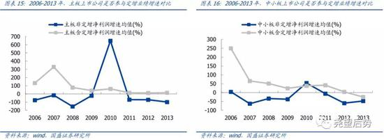定增业绩贡献明显,但呈现逐步回落态势。2006-2013年间定增项目募集资金规模主要集中于主板与中小板上市公司,实施定增的上市公司业绩增速在2010年以外均表现出明显的优势。但是从时间维度来看,定增的业绩贡献呈现逐年回落趋势,早期定增实施带来的业绩提升十分显著,但伴随定增走向常态化,由此带来的业绩提振也逐渐淡化。2011年之后,定增带来的业绩贡献再度出现持续回落,萌芽阶段的定增业绩催化逐步被岁月抹平。
