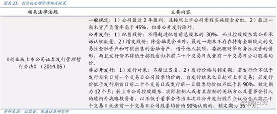 根据我们粗略测算,取消创业板非公开发行股票连续2年盈利的条件,可让当前创业板797家公司中的161家公司重新获得非公开发行的资格,数量占比20.2%,市值占比11.6%。而取消创业板公开发行证券最近一期末资产负债率高于45%的条件,则可让550家创业板公司重新满足发行条件,数量占比69.0%,市值占比66.7%。