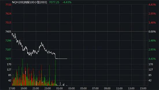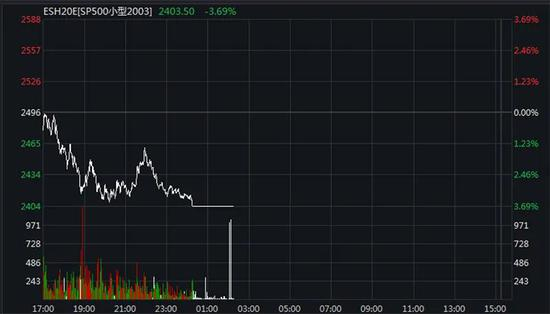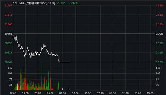 截至发稿,美股三大股指期货价格全部处在交易限制区间下限,小型道指期货下跌3.92%,纳斯达克100指数期货下跌4.43%,标普500指数期货下跌3.69%。(均为3月合约,下同)