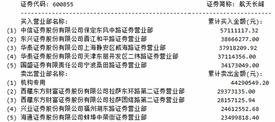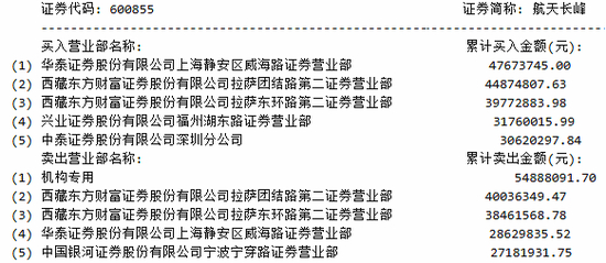 4月7日,交易所又公布了航天长峰的三日龙虎榜,中信证券保定东风中路营业部高居买一,买入金额5711.11万元;兴业证券福州湖东路营业部反手现身卖出榜单,卖出金额2461.26万元。