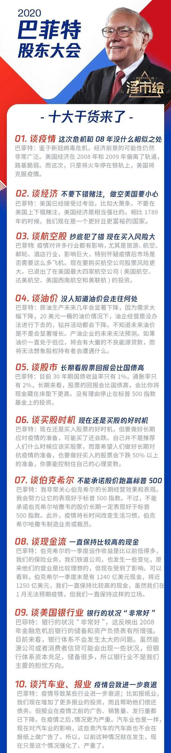 2020年巴菲特股东大会在奥马哈顺利召开。受疫情影响,巴菲特股东大会首次在线上举行。