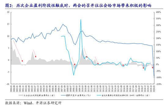 从经济特征上看,发现往往在经济面临下行压力(反映到企业盈利上的阶段性触底)时,两会的召开往往会给市场带来积极的影响。