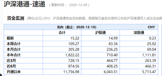 Wind数据显示,截至12月10日,北向资金净流入达到305.28亿元,远远高于全年月平均水平。数据上看,近6月,北上资金仅仅流入874.56亿元,但是近3月流入的总额就达到了728.15亿元。