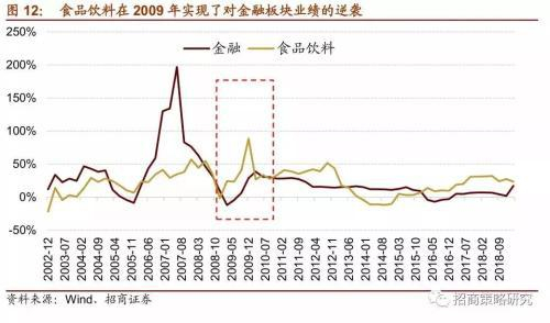 但是,2009年意外发生了,2010年一季度发布2009年年报的时候,投资者惊讶的发现,消费板块中食品饮料业绩增速达到88%,远高于金融板块的业绩增速。虽然全年中证金融和食品饮料涨幅差不多,但是显然,金融板块主要靠估值提升,而食品饮料则是实打实的业绩。