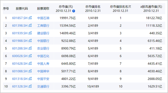 2010年,A股市值排名靠前的是中国石油、工商银行和中国神华等金融和资源类公司——对应的经济背景是,中国迎来工业化和城镇化高速推进,钢铁、有色、石油煤炭、地产等周期性投资行业成为拉动经济增长的“四大金刚”,而这些行业极度依赖信贷的融资模式,则使银行的规模和重要性变得空前强大。