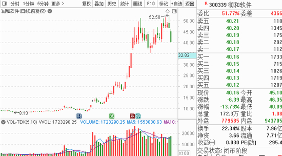 Choice数据显示,从今年5月12日开始截至6月17日,润和软件合计上榜13次。具体来看,6月7日,“小鳄鱼”所在席位买入6836万;机构席位做T,买入5456万,同时还卖出7626万,广发证券上海东方路的敢死队买入4407万。6月8日,机构席位买入1.61亿元,同时还卖出1.41亿,广发证券上海东方路的敢死队再度买入9965万。在6月8日的席位中,“章盟主”所在的席位悄悄卖出8730万,而在之前的席位中,并未看到“章盟主”的席位上榜,看来悄悄的低吸也是“章盟主”的手段。6月9日席位来看,各大席位做T明显,其中深股通席位当日买入1.04亿,同时还卖出2.64亿元,机构席位买入7170万的同时还卖出1亿元。而“小鳄鱼”所在的席位买入9103万的同时还卖出7784万,当日“小鳄鱼”是净买入的。