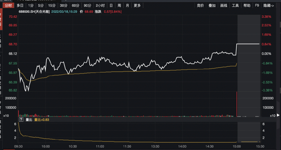新纳入全球股票系列的科创板股票天合光能尾盘也出现放量拉升的情况,3月18日报68.69元,涨0.84%。