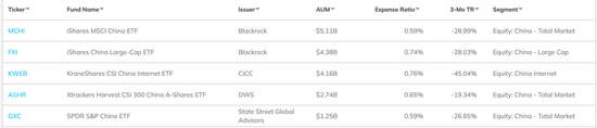 美国上市,跟踪中国互联网指数的ETF-KWEB最近规模仅41.6亿美元,较高点时规模已经腰斩。KWEB曾为海外最大中国股票ETF。最近,它已经滑落至美国市场第三大中国股票ETF。最新数据显示,美国市场第一大中国股票ETF为MCHI,跟踪MSCI中国指数,规模为51.1亿美元,第二大为安硕中国大盘ETF,跟踪中国大盘指数。这两只ETF都由贝莱德旗下指数品牌安硕发行。