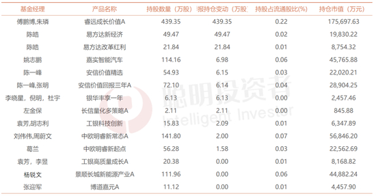 虽然跌幅颇大,但宁德时代仍被众多基金经理重仓持有,从三季报的披露情况来看,傅鹏博、陈皓大手笔加仓,姚志鹏、葛兰也有不同程度的加仓,杨锐文等人也是持股未动。