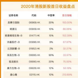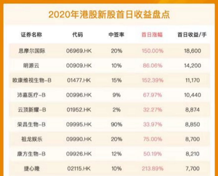 有人会说,既然全面注册制来了,新股的风险越来越大,我就干脆全部放弃算了。答案显然是否定的!我们以早已实行注册制的港股为例,2020年,整个港股市场环境还算不错,和目前A股环境类似。
