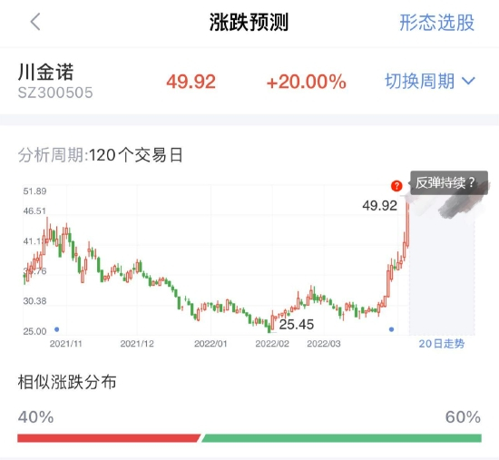 以今日大涨的川金诺为例,利用新浪财经-形态识金对其现有120天的形态走势,分析了该股未来20天的走势预测,后市能否持续走强?打开新浪财经-形态识金速来解锁>>未来走势也就不再成迷!
