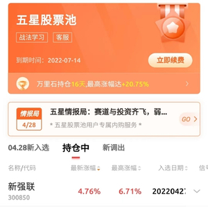 【五星股票池】太强了!入选股今天表现可圈可点!新强联涨近5%