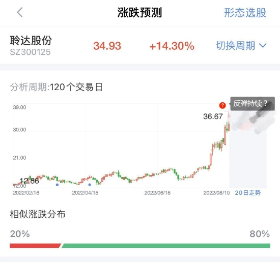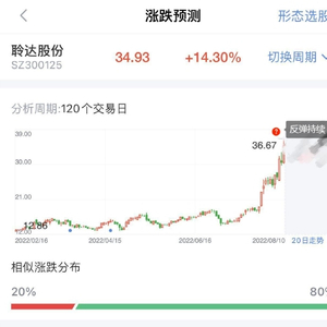 以今日大涨的聆达股份为例,利用新浪财经-形态识金对其现有120天的形态走势,分析了该股未来20天的走势预测,后市能否持续反弹?打开新浪财经-形态识金速来解锁>>未来走势也就不再成迷!