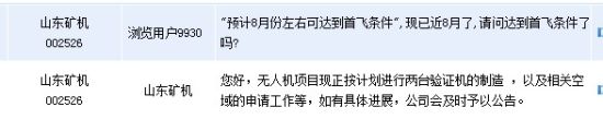 [互动]山东矿机:公司无人机项目正按计划进行