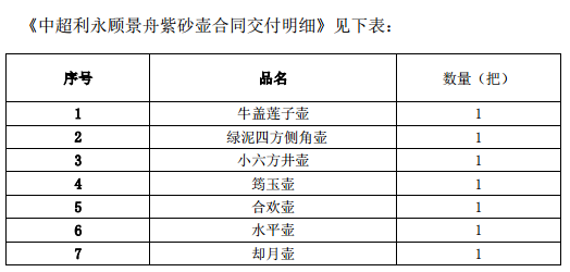 附图:《中超利永顾景舟紫砂壶合同交付明细》(截图来自公司公告)
