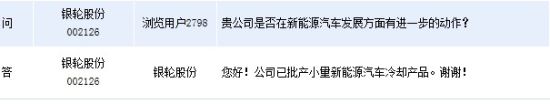 [互动]银轮股份:已量产新能源汽车冷却产品