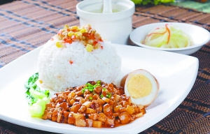有这样一句台湾俗语,如果你看到哪家的烟囱上有缕缕青烟,那么那家一定在做卤肉饭。卤肉饭的特色在于肉酱和肉汁,它们是制作的关键部分。卤肉饭在台南、台中、台北的制作方法和特点均有差异。