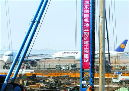 东方网12月30日消息:昨天,随着上海浦东国际机场卫星厅工程第一根桩基缓缓入地,上海航空枢纽建设中具有里程碑意义的浦东机场三期扩建工程全面开工。