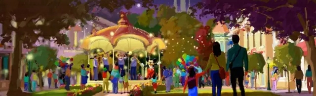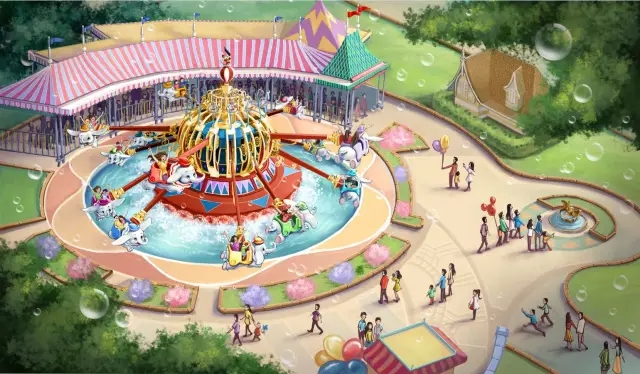 这里旋转木马不同于其他迪士尼乐园的传统中世纪风格,是一座缤纷多彩的旋转木马,有72种绚烂颜色交织。