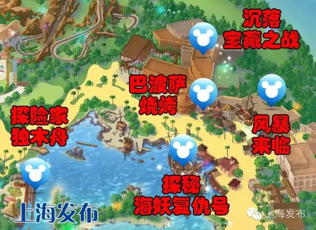 “宝藏湾”有多少秘密?你可以乘坐探险家独木舟探索海岛、登上海妖复仇号占领宝藏湾、体验刺激的沉落宝藏之战,最后还能在巴波萨烧烤餐厅大快朵颐~