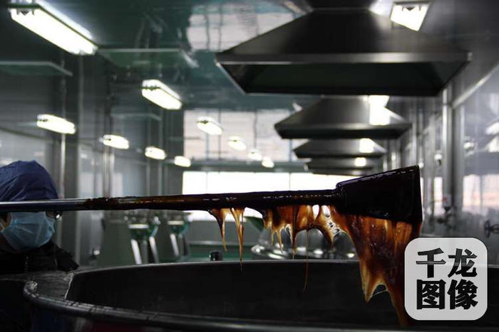图为北京同仁堂制作食用阿胶传统工艺中“挂旗”工序,必须依靠经验,人工操作。