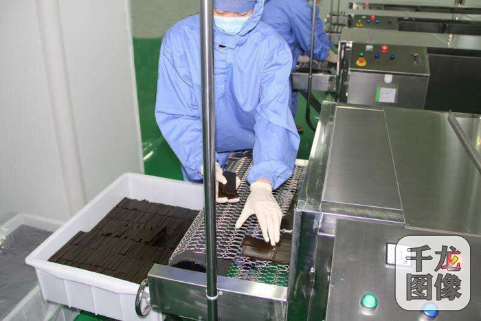 北京同仁堂工作人员在食用阿胶专用生产线上认真作业。北京同仁堂供图。