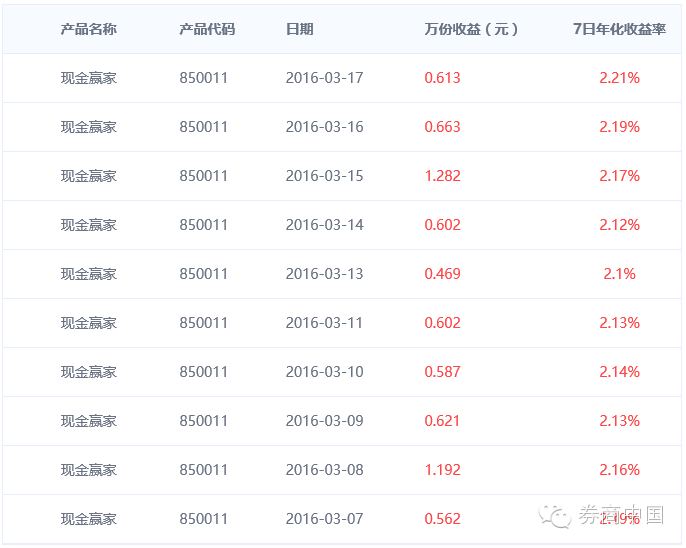 据了解,3月11日以来,该产品的7日年化收益率均高于2.6%。