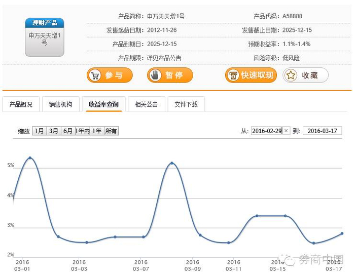 申万宏源申万天天增1号申万天天增1号产品是该券商的一款热销产品,投资起点为5万份,无固定存续期限。