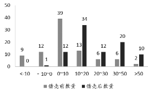 借壳前后资产负债率分布(柱状图对比)