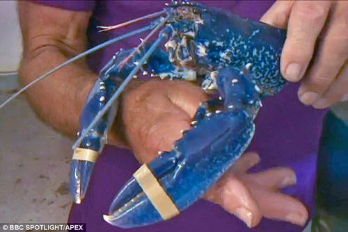 日前,一位名为基斯•赛特(Keith Setter)的渔民在德文郡的拉德拉姆海湾(Ladram Bay)捕一位捕获了一只蓝色龙虾。这位的渔民称自己在拉德拉姆海湾工作了50年了,却第一次见到这种龙虾。这种龙虾因基因畸变而变蓝,这种基因畸变导致他们产生的一种蛋白质比其他龙虾更多,因此身体呈现蓝色。这种蓝色龙虾在龙虾中存在的几率是二百万分之一。渔夫们通常会把遇到蓝色龙虾看作好兆头而不会把它吃掉。