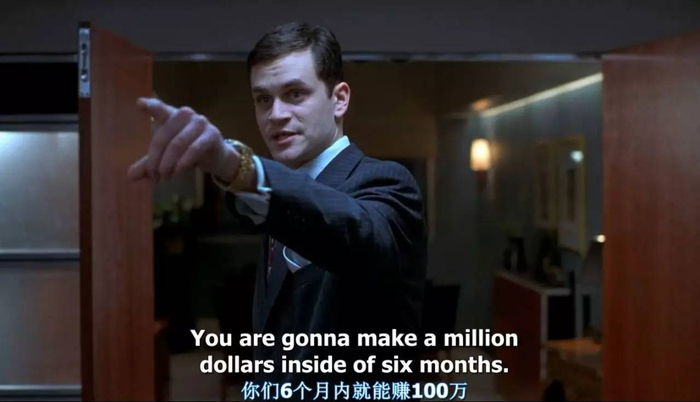 人生第一桶金挖到后,莱昂纳多自己开了一家黑嘴证券行,专门做这生意——打电话想尽一切办法骗人购买便士股票。片中可以看到和所有诈骗术一样,电话营销有“台本”,有一套深谙人心的话术。当然,要成为“华尔街之狼”,光干点电话骗术不够,他后面继续干了大证券行能干的事情,比如把垃圾股推到上市(是真的IPO,狠的是上市前偷偷拿了85%的股份,上市当天全公司鼓动市场,使股价从4.15美元开盘涨到18美元)等等,坑人无数,31岁就拥有亿万身家。
