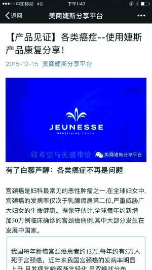 原标题:癌症克星 美商婕斯伪直销真传销?
