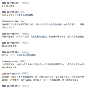 以上为李先生对此事件的陈述。随后,新浪财经工作人员与其业务经理袁先生联系,其称,之所以未签订合同是因为客户自愿赞助,而由会员终身制改为3个月的A类服务是因为原公司与成都汇阳投资顾问有限公司达成合作协议,原公司已经没有了,能有3个月的服务期已是对老会员的照顾。袁先生还表示,因公司有这样的异动,所有他现已离职,但其在离职前已与之前老会员以汇阳投资的名义与他们补签了相关合同,至于李先生,因为一直联系不上,所以其并未与之补签相应合同。