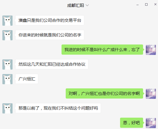 10月下旬,李先生被袁先生告知,广兴恒汇公司因与成都汇阳投资顾问有限公司达成合作协议,现成为成都汇阳分公司,以前的会员自动转入A类合作客户,服务时间为3个月。